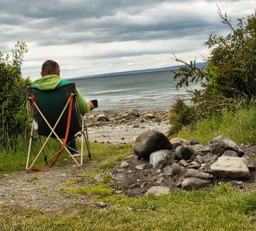 After almost a week of rain and strong winds, I can once again enjoy a cup of coffee in front of the Dog.O.Mobil with a view of Tierra Del Fuego.