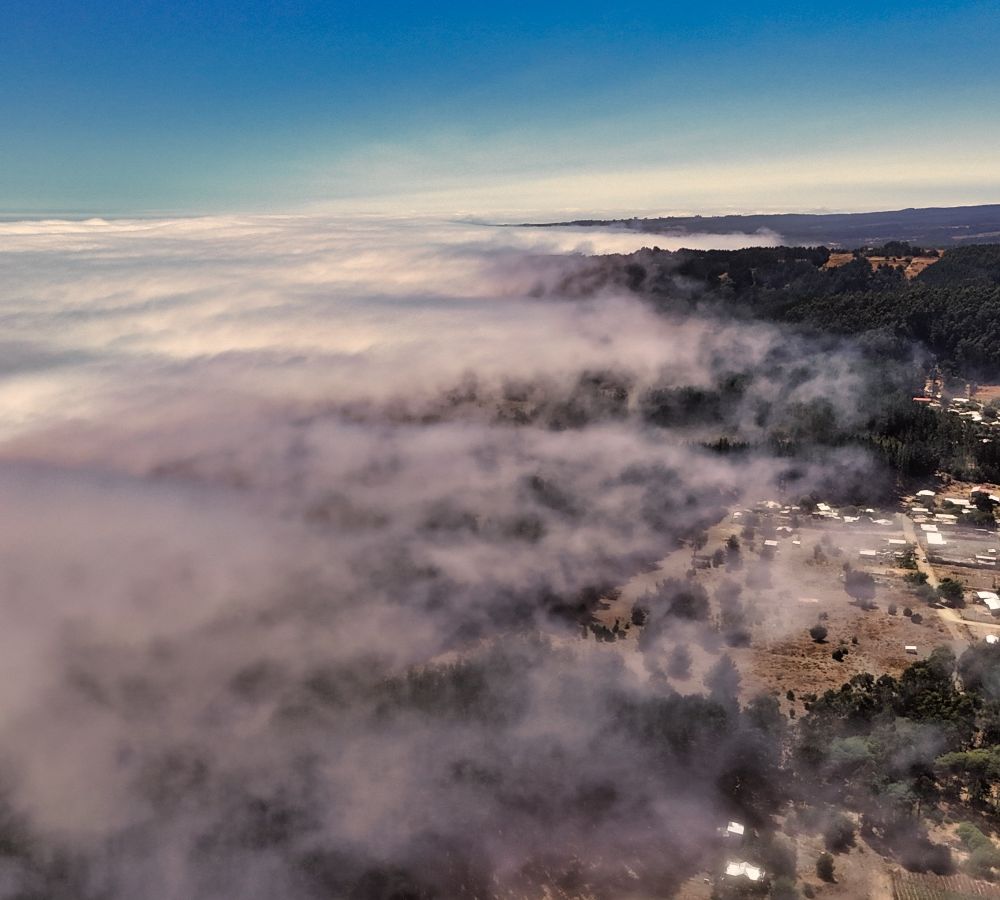 Without warning, this fog forms on the Pacific coast. The temperature quickly drops from over 25 degrees to well below 20 degrees.