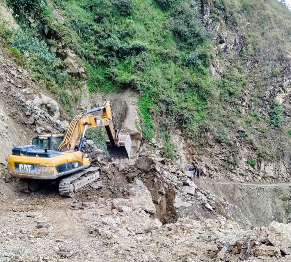 Next to the road, it goes down the steep slope for about 500 meters. I admired the excavator driver who made the slope passable within a day.