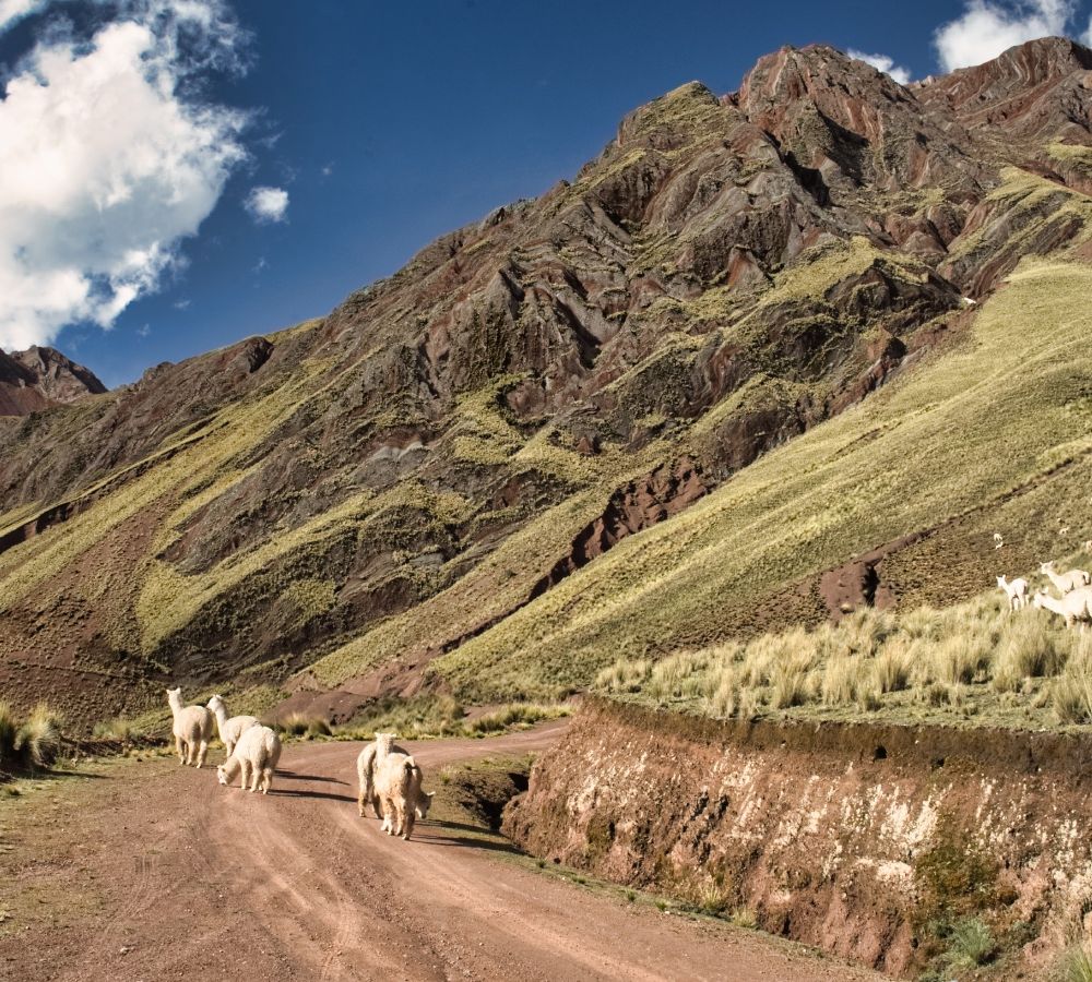At Pallay Punchu - Layo Canas the alpaccas still graze freely along the road
