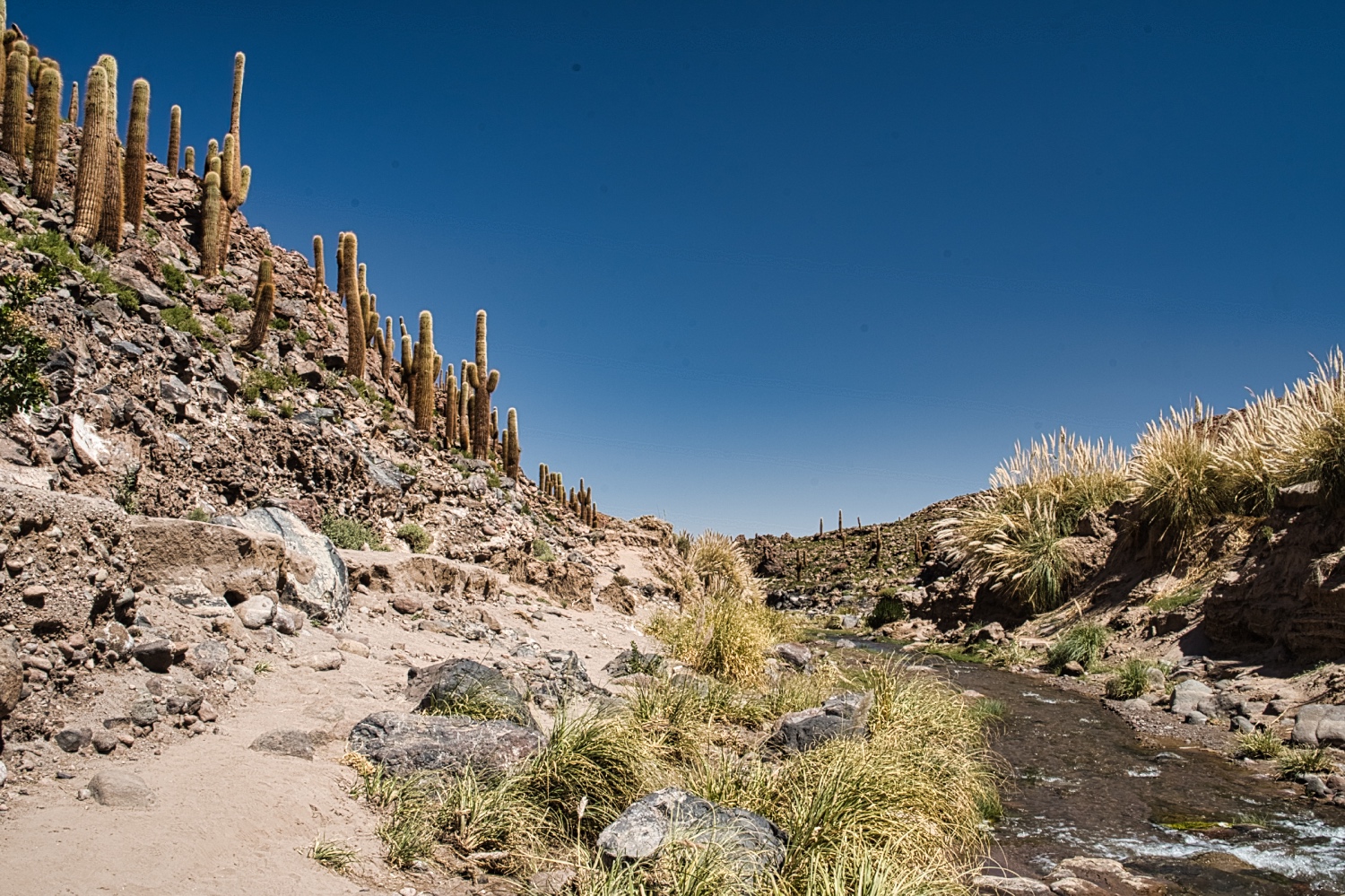 Mein Laguna Chaxa Ticket galt auch für as Valle de Jere. Das Tal versorgt den Salar de Atacama und Toconao mit Wasser, aber unten in Toconao gab es nicht viel zu sehen, ein eingekerbter Flusslauf halt. Hinterher erfuhr ich, dass es weiter oben in der Schlucht etwas mehr zu sehen gab.