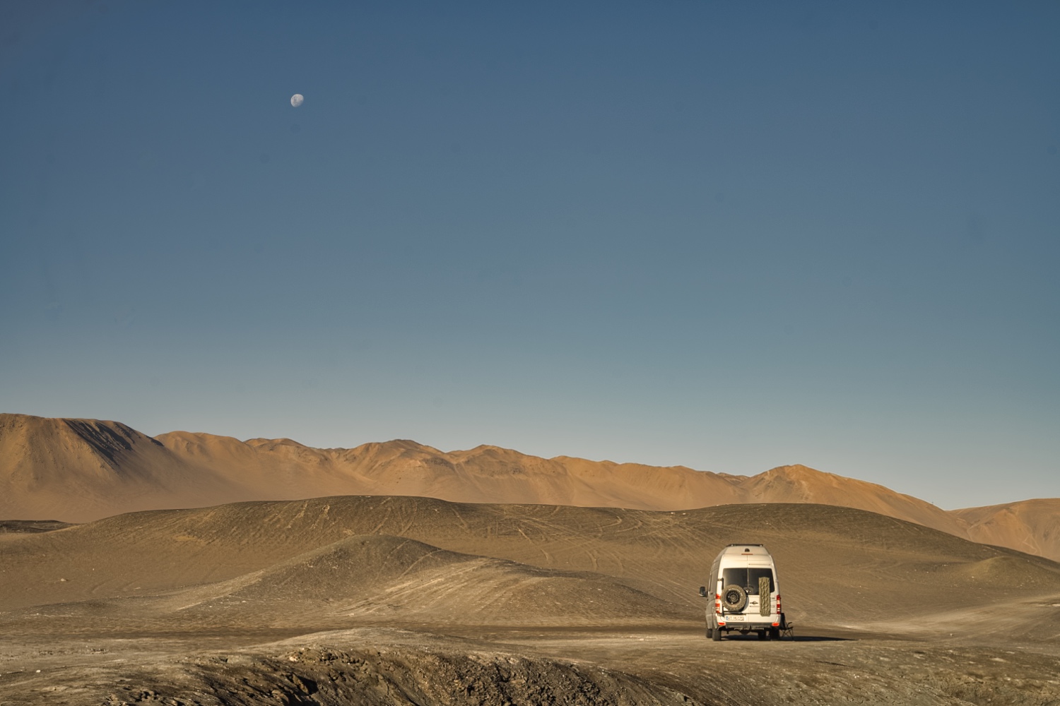 Danach wurde die Straße auch deutlich schlechter. Vor dem Complejo Turístico Tatio Mallku, welches um 17:45 geschlossen war und somit auch keine Weiterfahrt gab, fand ich auf einem Hügelrücken (4'200 m.ü.d.m) meinen Stellplatz für die Nacht.