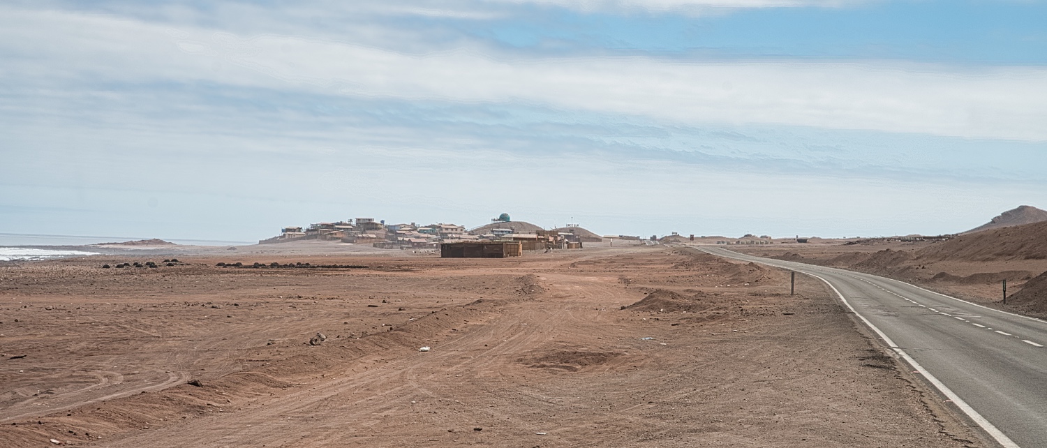 Die Ortschafften entlang der Ruta 1 sind, so glaube ich, eigentlich Badeorte mit Stränden. Bestehend aus bunten Holzhütten und ein paar Geschäften, die aber fast alle im April zu hatten. Zwischen Tocopilla und Iquique waren außer ein paar Fischern und Leuten die Seegras sammelten, nicht viele andere Leute zu sehen.