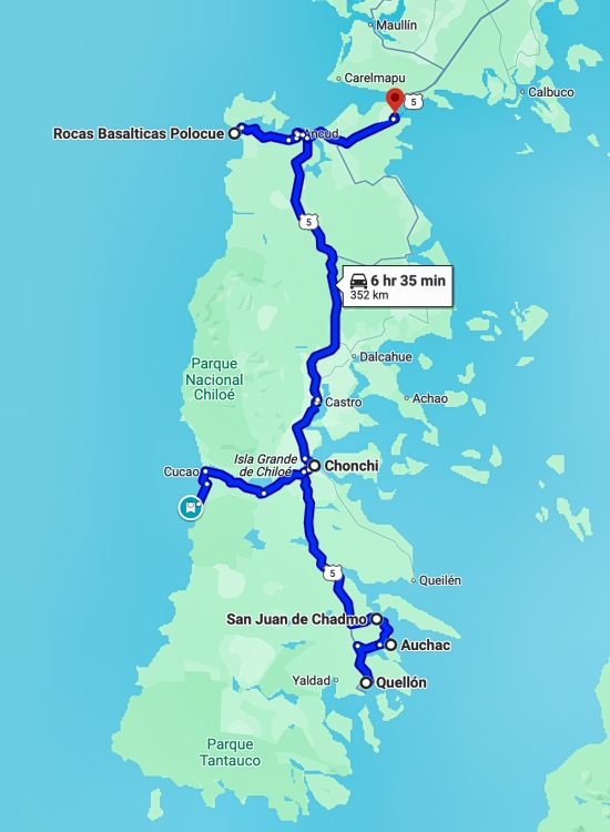 Nach 4 Stunden Fahrt mit der Fähre kam ich bei schönem Wetter in Quellón an. Ich kam nicht nur in Quellón an, sondern auch in der Región de Los Lagos. Nach Región de Aysén del General Carlos Ibáñez del Campo und Región de Magallanes y de la Antártica Chilena war das meine 3. Provinz.