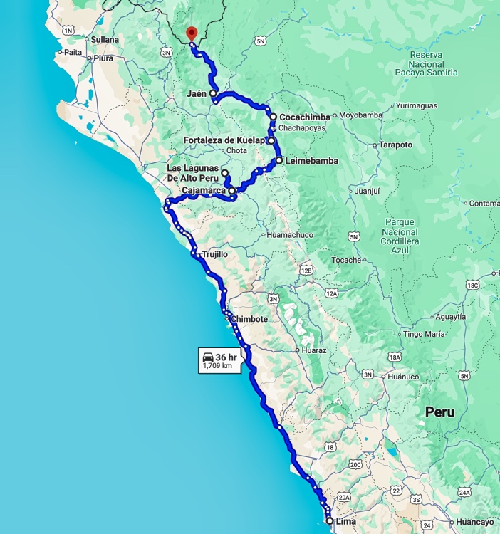Auf der Strecke könnte ich mir den Bosque de Piedras de Cumbemayo, die Lagunas De Alto Peru, die Tropfsteinhöhlen von Iglesia Yanamachay, die Ventanillas de Otuzco bei Cajamarca, das Fortaleza de Kuelap, das Mausoleum of Revash, und auch den Mirador del Cañon de Huancas Sonche ansehen