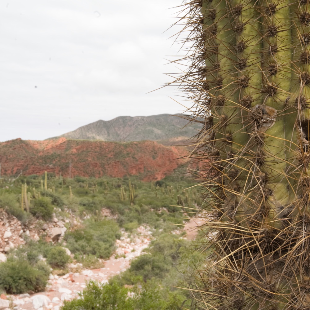 Nächster Stopp, Chilecito! Seit Huaco war die Cuesta de Miranda das einzige kurvenreiche Stück auf der RN40. Der Pass Punto Alto (2'040 m.ü.d.m) verbindet die Sierra de Sañogasta und die Sierra de Famatina und war ein alter Inkaweg zwischen Chilecito und Villa Unión . Ich würde sagen, dass die Cuesta de Miranda ein kleines Highlight war. Denn neben den Gesteinsformationen gab es fotogene Kakteen in Hülle und Fülle.