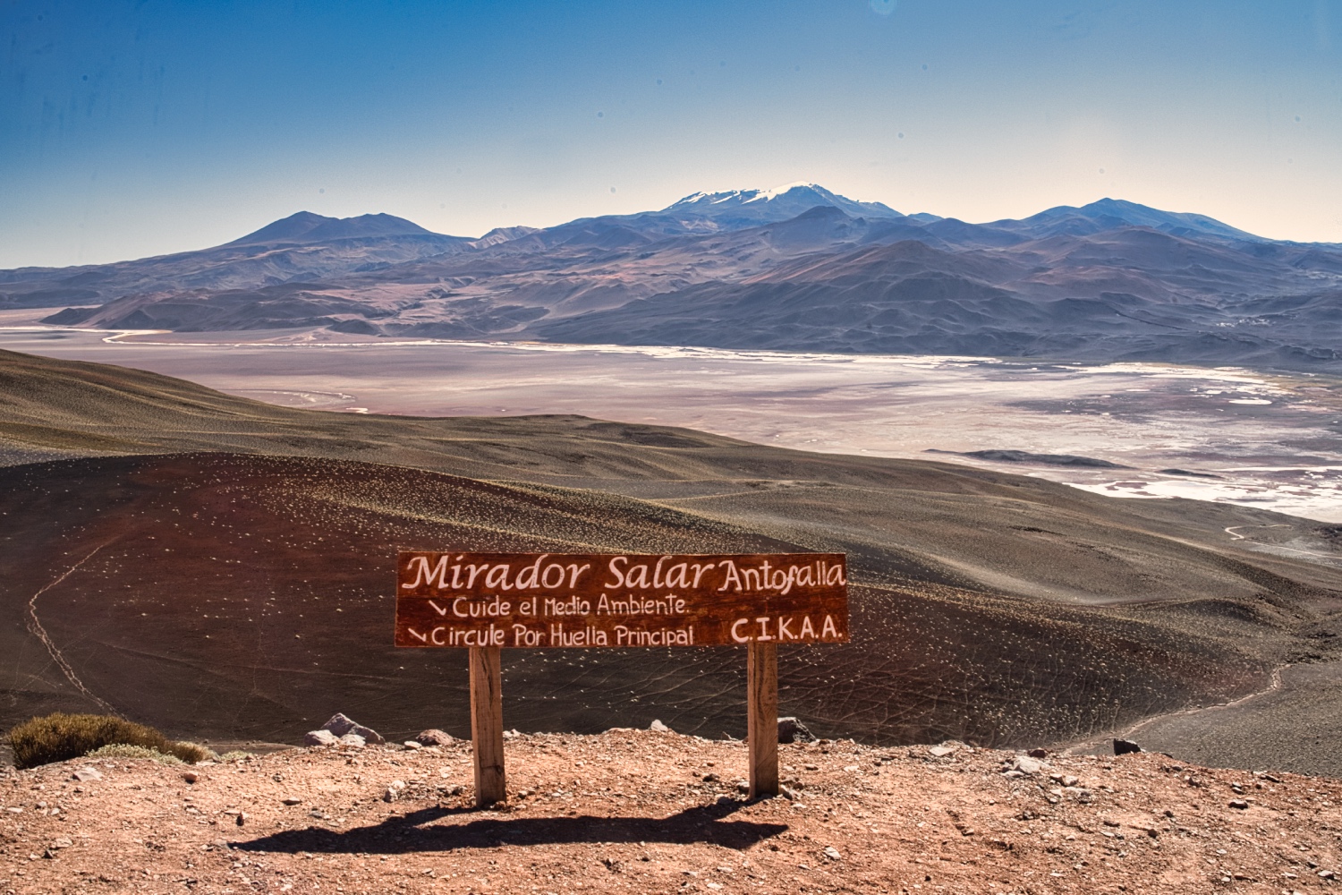 Die Abfahrt zum Laguna Salar de Antofalla war dann aber echt übel. Erster Gang und Schrittgeschwindigkeit über gute 10 km. Belohnt wurde man durch eine geniale Aussicht auf eine der längsten Salinen der Welt.