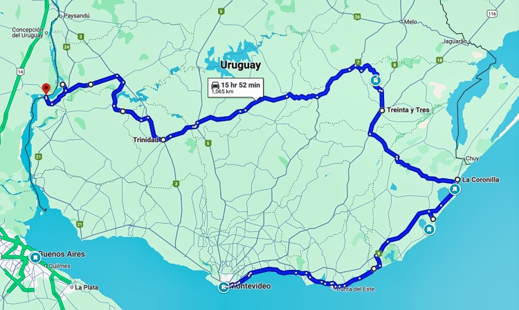 Alles in Allem habe ich ca. 1´600 km in Uruguay zurückgelegt. Hab gelernt, dass es nicht überall das Europäische GAS OIL 10S gibt, sondern meistens nur das GAS OIL 50 S . Im Vorfeld hat es viele Diskussionen bzgl der Telepeaje gegeben, aber ich musste nur einmal durch eine durch und konnte an der Station eine Telepeaje Vignette kaufen und aufladen. Das macht man in dem Häuschen an der Station und nicht an der Schranke, wie in Argentinien.