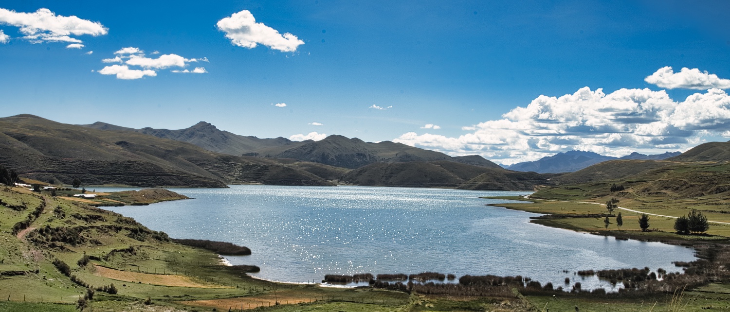 Die Hügel entlang der Straße blieben grün und gewellt, ab und zu ein Stall oder Bauernhof, und je näher ich der Laguna Langui Layo, desto dichter wurde die Region besiedelt. Die Laguna selbst kann mit jedem See in den Alpen mithalten.