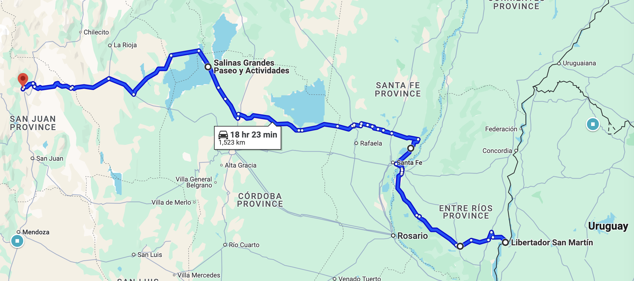 Am Ende waren es über 1´500 km bis wir in Jachal angekommen waren. Bei Temperaturen deutlich über 30 Grad im November. Eigentlich ist das komische, dass wir dort nur getankt haben und noch nicht mal auf die RN40 sind.