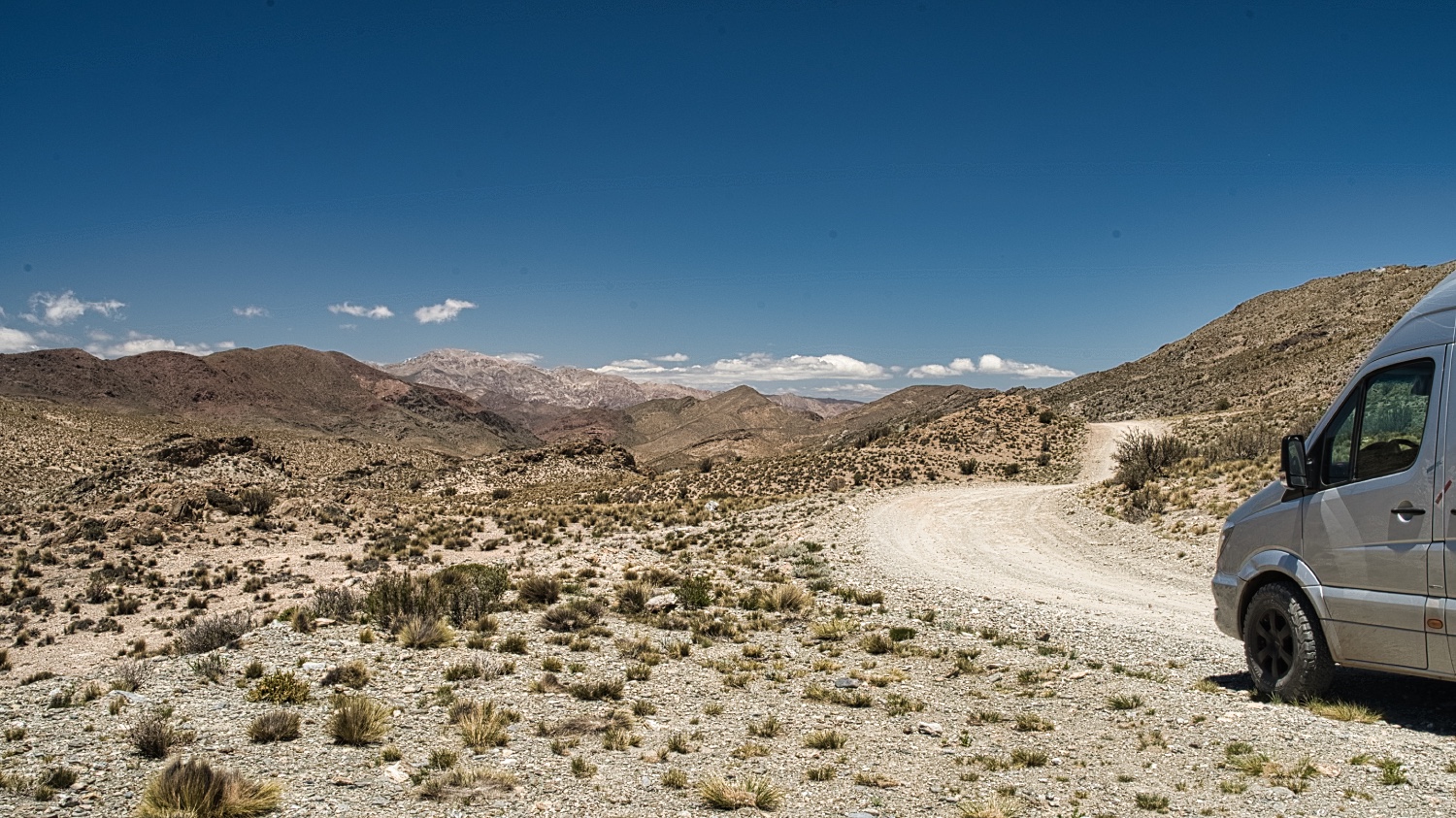 Nach einem Tag Blog Updates ging es weiter. Abrupt endete der Traum von einer entspannten Fahrt auf dem Weg nach Uspallata. Mit der Überquerung der Grenze zur Mendoza Provinz endete auch die geteerte Straße und die nächsten 60 km waren Piste. Die erste Piste mit so etwas wie Verkehr.