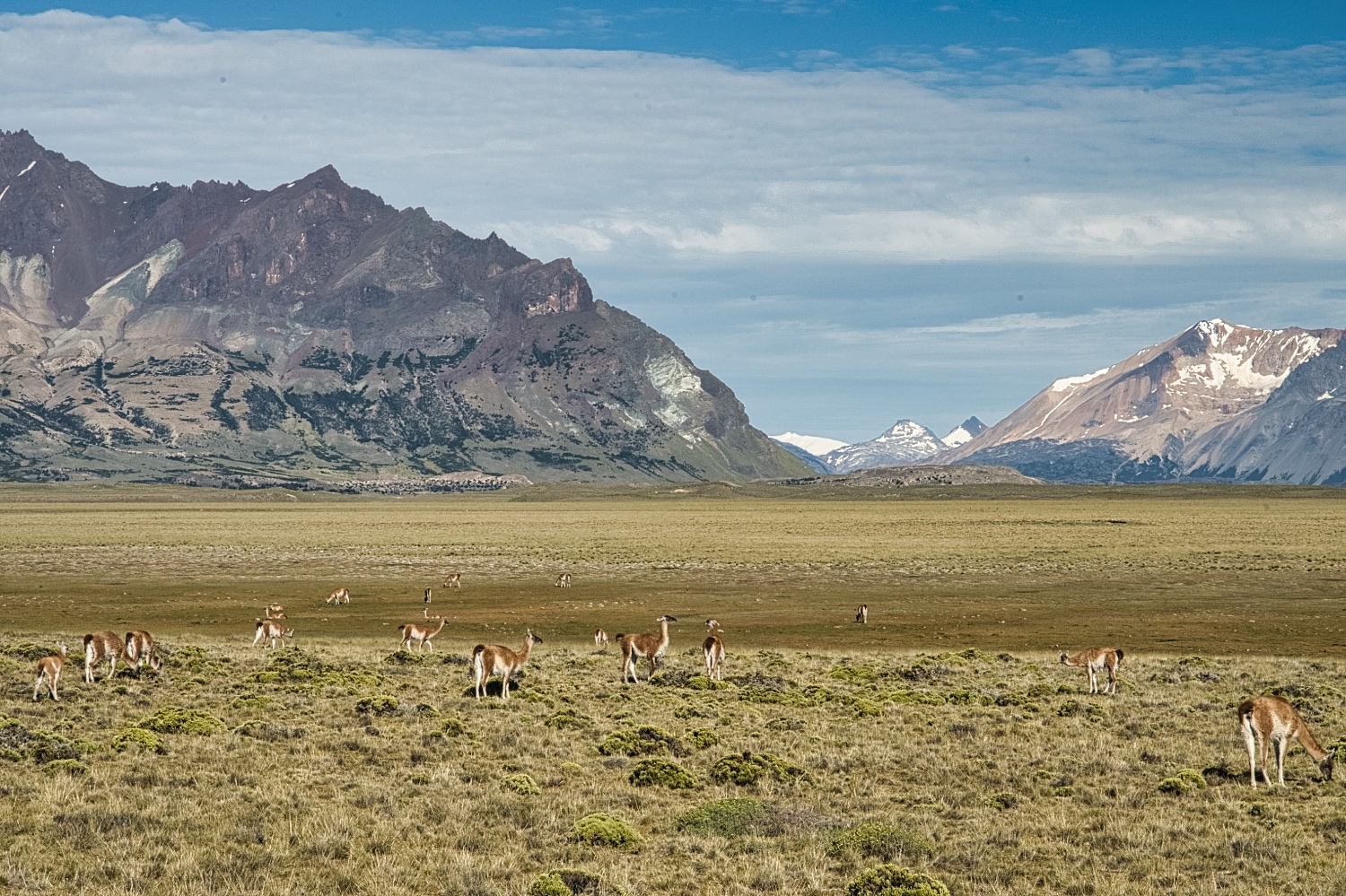Ich hatte zwei Möglichkeiten, bevor ich über den Paso Roballo nach Chile wollte. Zuerst ging es in den Parque Nacional Perito Moreno. Eine Wanderung am Lago Belgrano und eine am Lago Burmeister sollten es werden. Auf der RP37 ging es 90 km nach Westen auf einer guten Piste. An solche Pisten war ich mittlerweile gewöhnt, aber trotzdem musste ich aufpassen, dass mich der Wind nicht von der Straße wehte. Schade, dass man so etwas nicht auf Fotos sieht. Ich sah Guanaco-Herden und wie sich die Estepa langsam in eine Hügellandschaft verwandelte und es dann in der Ferne bergig wurde.