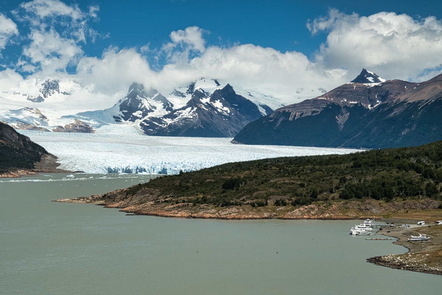 Ein weiterer Hafen, an dem Touristen in Boote steigen. Habe mir dann einen Espresso gemacht und am Mirador del Glaciar Perito Moreno die Sonne und den Blick auf das Bergpanorama und das milchige Wasser des Lago Argentino / Lago Roca genossen.
