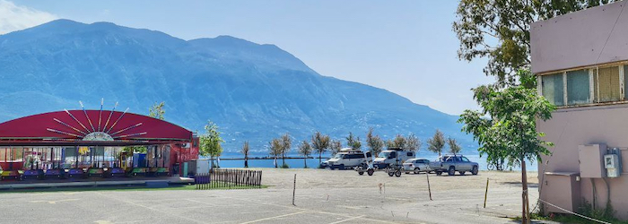 Für 21 € kommt man über die Brücke nach Patras und auf Peleponnes. Die Brücke und Patras sind beeindruckend. Autofahren in Patras, und ich bin mitten durch die Einkaufsmeile, war wie Tirana. Ich habe es genossen.