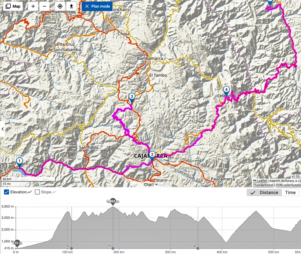 Before Cajamarca, I should be at 3'900 meters above sea level. I would climb to almost 4'000 meters over a distance of about 170 km.