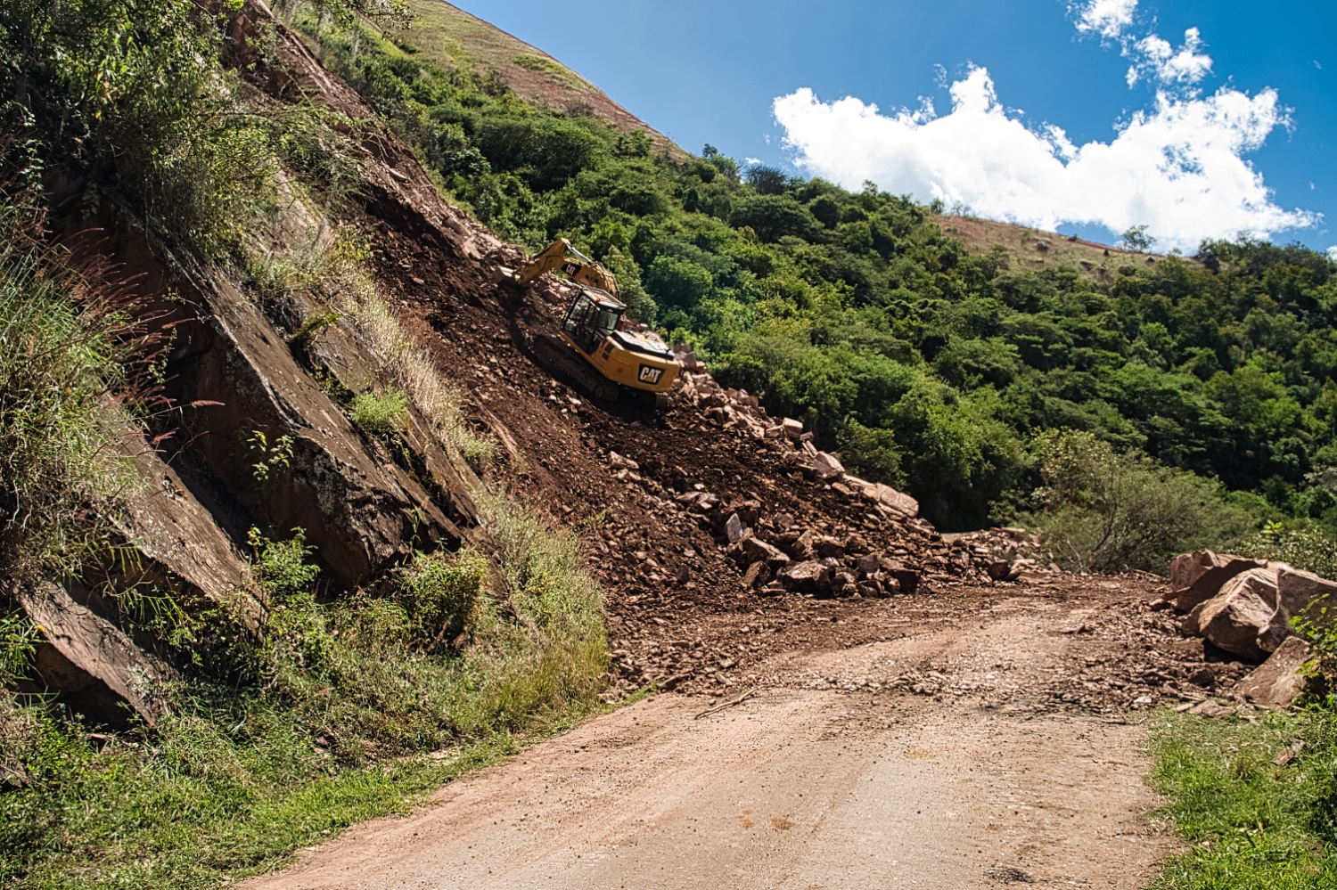 On the drive uphill from Puente de Chacanto, there were once again landslides and excavator operators showing me what you can do with an excavator.