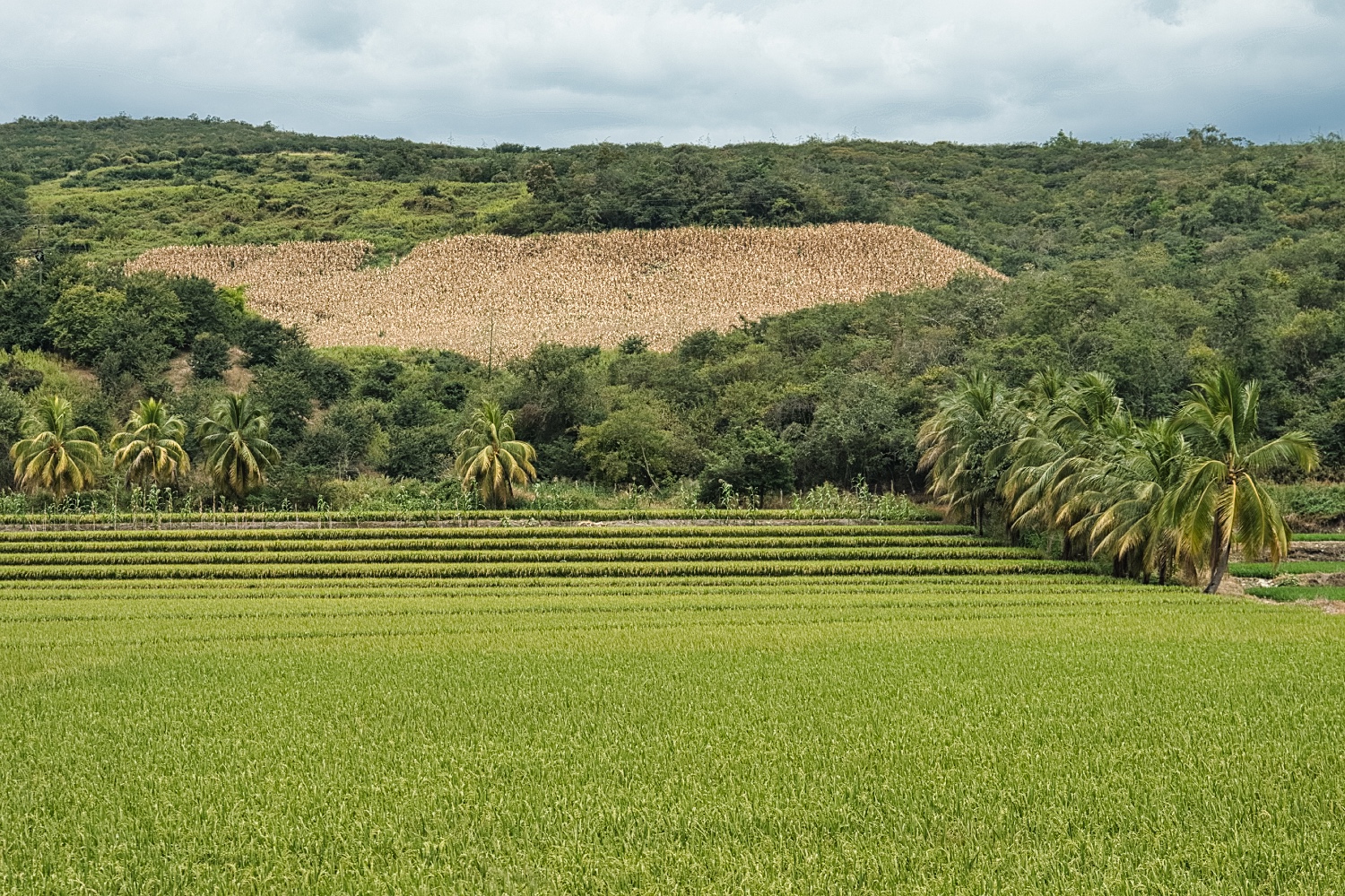On the way to the parking spot, I passed through one of Peru's rice-growing regions, La Libertad. Over 25'000 tons of rice are produced here every year. The harvest was mostly over, as many fields had been burned and rice was already being grown again on others. Black sacks of rice were stacked everywhere along Ruta 8 and loaded onto trucks.