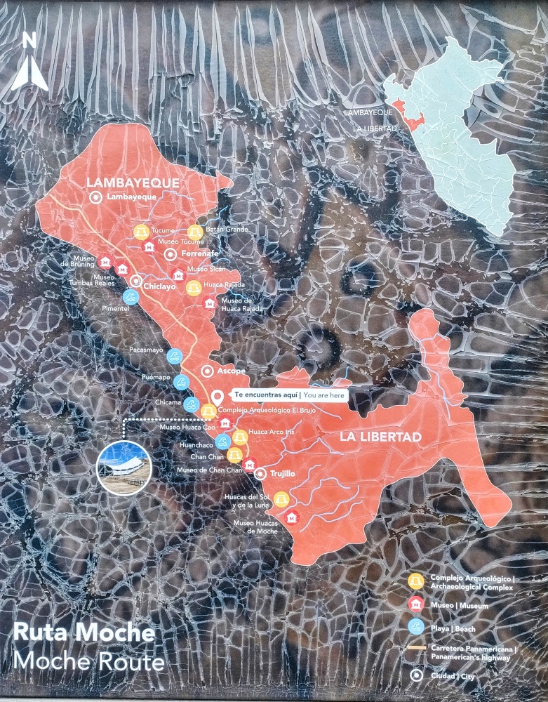 I found an information board entitled Ruta Moche. All Moche museums and complexes were listed on it. Tucume and Sitan were also included.